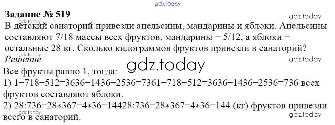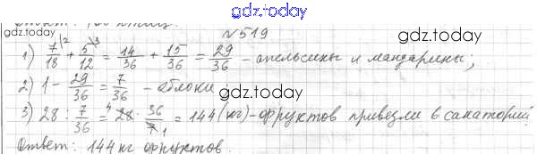 Ответы к Решение к главе 2. Обыкновенные дроби (упражнения) 519 Учебнику по Математике для 6 класса Мерзляк, Полонский Вентана-граф Алгоритм успеха 2016