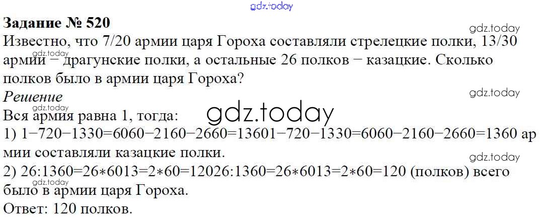 Ответы к Решение к главе 2. Обыкновенные дроби (упражнения) 520 Учебнику по Математике для 6 класса Мерзляк, Полонский Вентана-граф Алгоритм успеха 2016