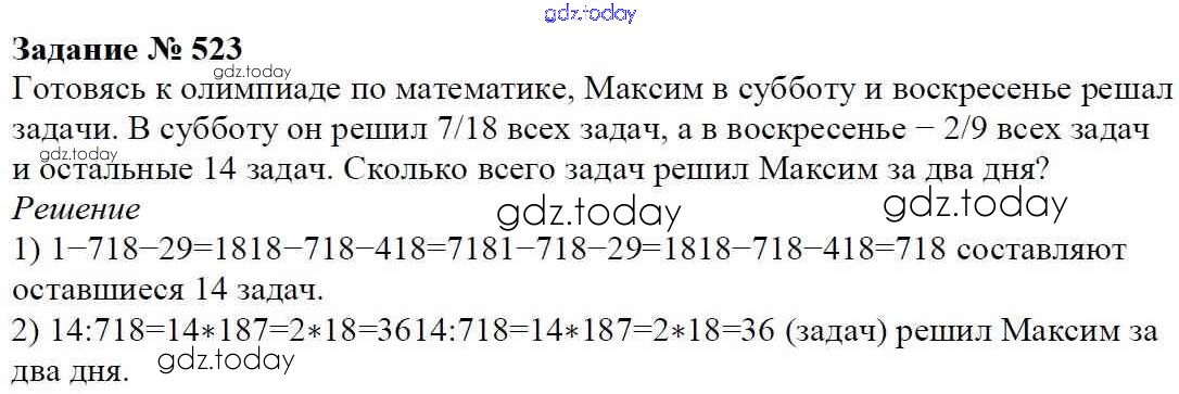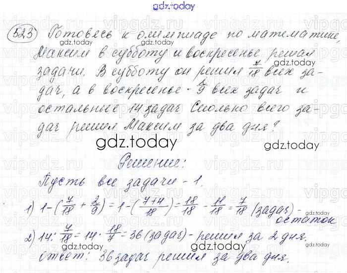 Ответы к Решение к главе 2. Обыкновенные дроби (упражнения) 523 Учебнику по Математике для 6 класса Мерзляк, Полонский Вентана-граф Алгоритм успеха 2016