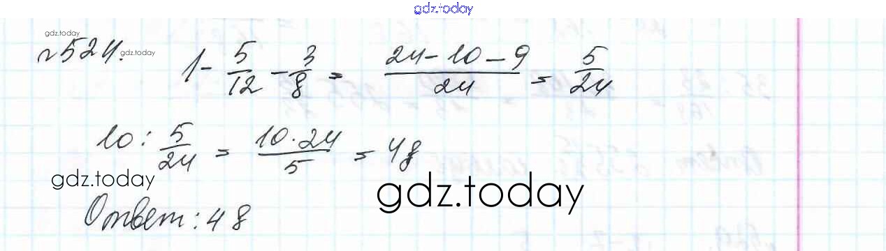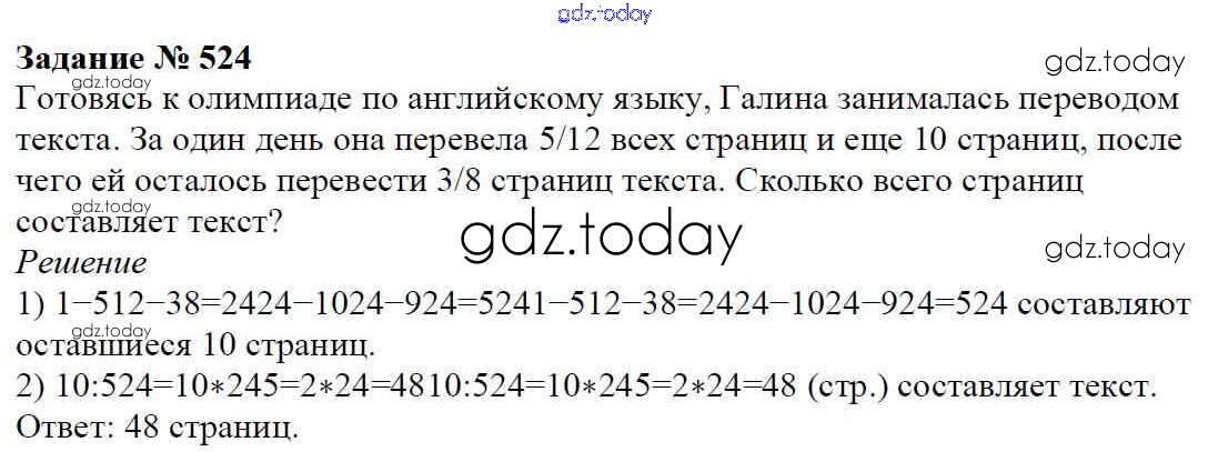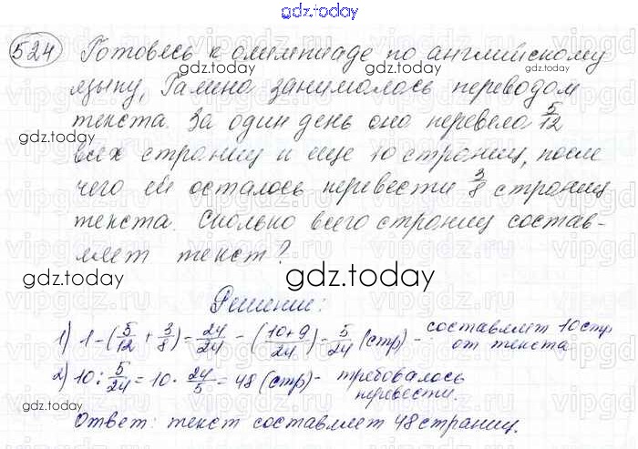 Ответы к Решение к главе 2. Обыкновенные дроби (упражнения) 524 Учебнику по Математике для 6 класса Мерзляк, Полонский Вентана-граф Алгоритм успеха 2016