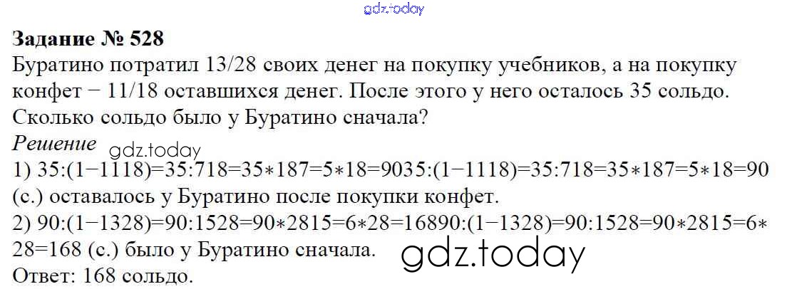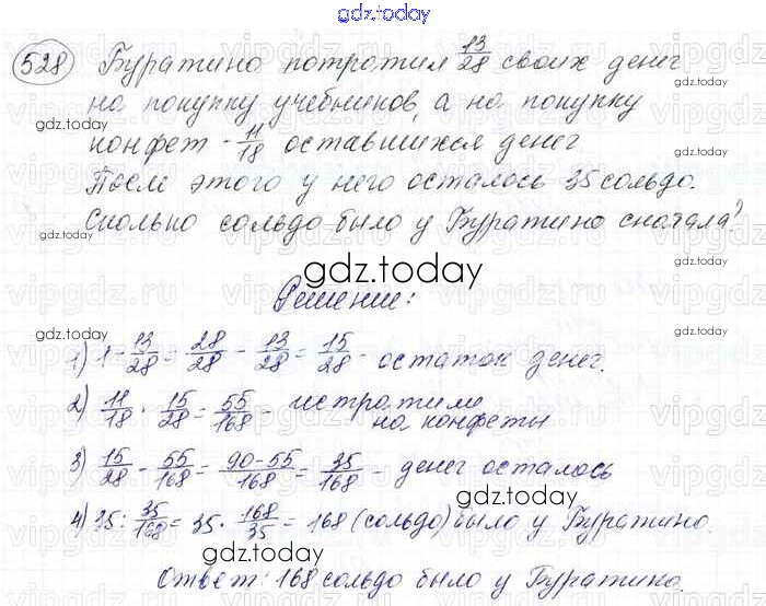 Ответы к Решение к главе 2. Обыкновенные дроби (упражнения) 528 Учебнику по Математике для 6 класса Мерзляк, Полонский Вентана-граф Алгоритм успеха 2016