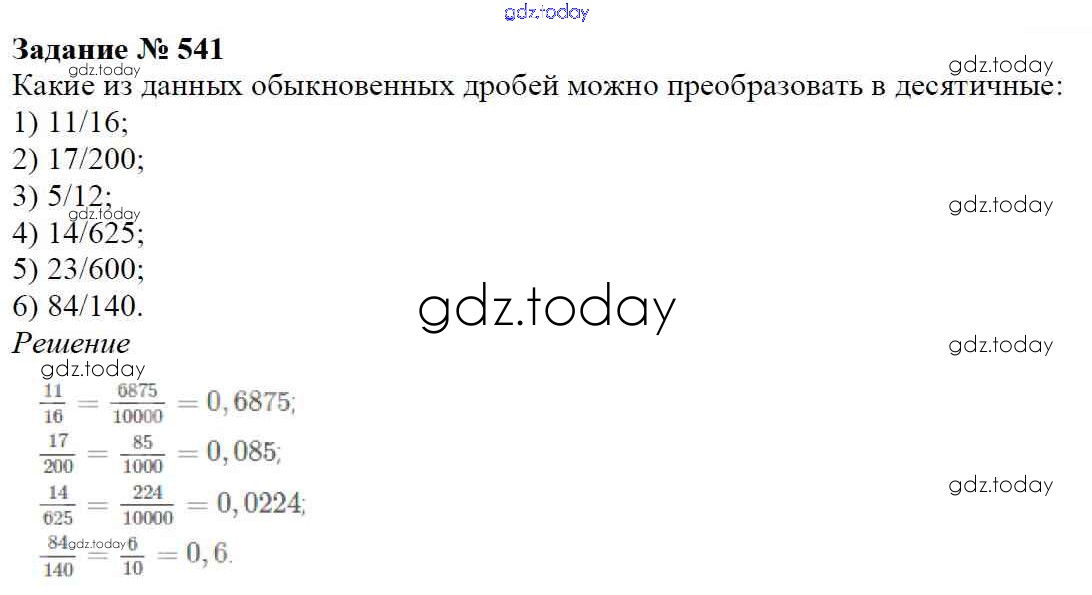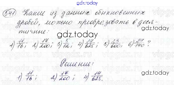 Ответы к Решение к главе 2. Обыкновенные дроби (упражнения) 541 Учебнику по Математике для 6 класса Мерзляк, Полонский Вентана-граф Алгоритм успеха 2016