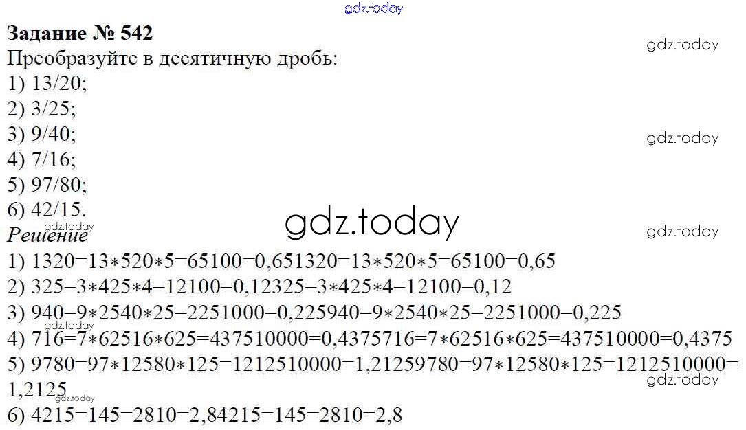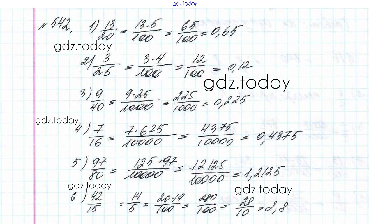 Ответы к Решение к главе 2. Обыкновенные дроби (упражнения) 542 Учебнику по Математике для 6 класса Мерзляк, Полонский Вентана-граф Алгоритм успеха 2016