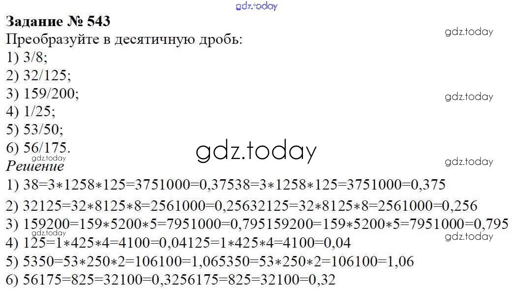 Ответы к Решение к главе 2. Обыкновенные дроби (упражнения) 543 Учебнику по Математике для 6 класса Мерзляк, Полонский Вентана-граф Алгоритм успеха 2016
