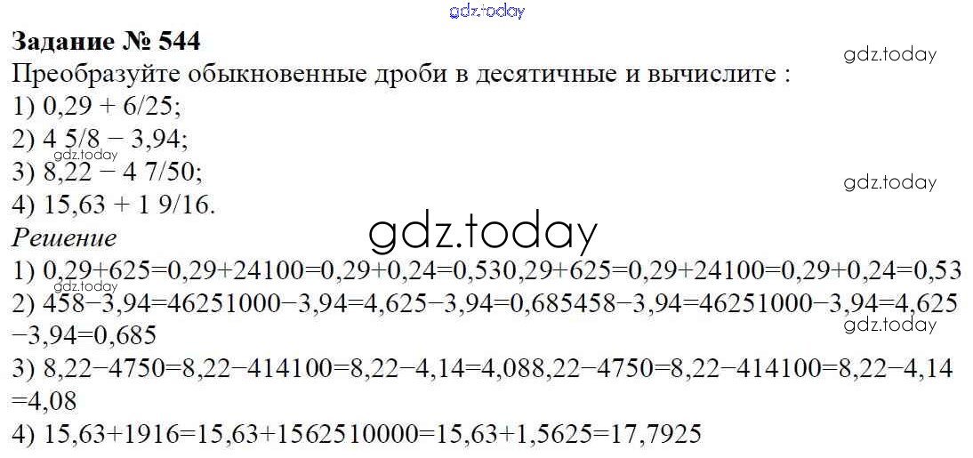 Ответы к Решение к главе 2. Обыкновенные дроби (упражнения) 544 Учебнику по Математике для 6 класса Мерзляк, Полонский Вентана-граф Алгоритм успеха 2016
