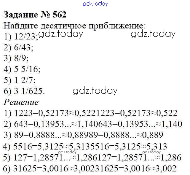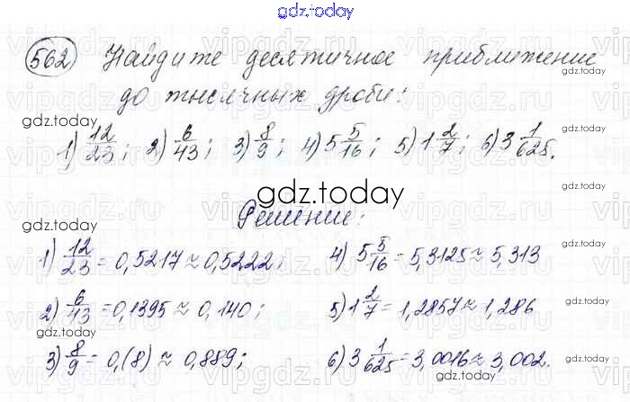 Ответы к Решение к главе 2. Обыкновенные дроби (упражнения) 562 Учебнику по Математике для 6 класса Мерзляк, Полонский Вентана-граф Алгоритм успеха 2016