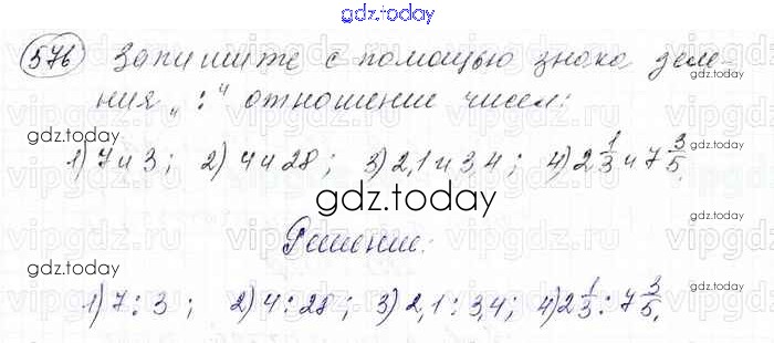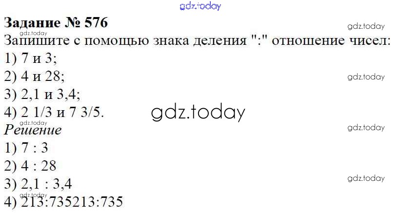 На страницах сайта gdz.today вы найдете учебный и вспомогательный материал, направленный на улучшения знаний школьной программы. ГДЗ - онлайн мир знаний Решение к главе 3. Отношения и пропорции (упражнения) 576 Учебнику по Математике для 6 класса Мерзляк, Полонский Вентана-граф Алгоритм успеха 2016