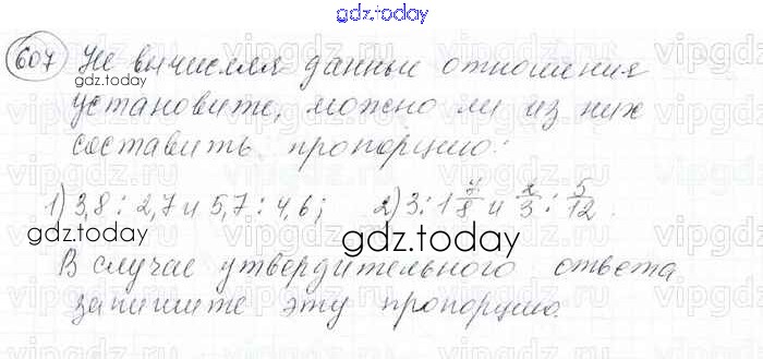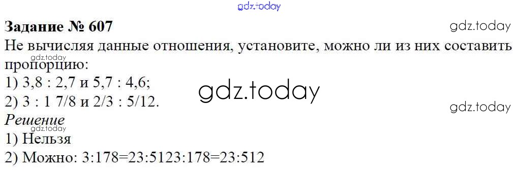 На страницах сайта gdz.today вы найдете учебный и вспомогательный материал, направленный на улучшения знаний школьной программы. ГДЗ - онлайн мир знаний Решение к главе 3. Отношения и пропорции (упражнения) 607 Учебнику по Математике для 6 класса Мерзляк, Полонский Вентана-граф Алгоритм успеха 2016