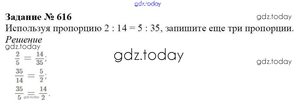 На страницах сайта gdz.today вы найдете учебный и вспомогательный материал, направленный на улучшения знаний школьной программы. ГДЗ - онлайн мир знаний Решение к главе 3. Отношения и пропорции (упражнения) 616 Учебнику по Математике для 6 класса Мерзляк, Полонский Вентана-граф Алгоритм успеха 2016