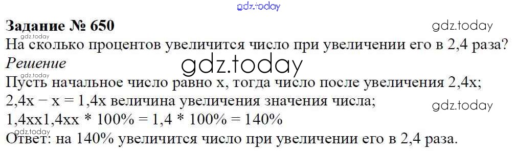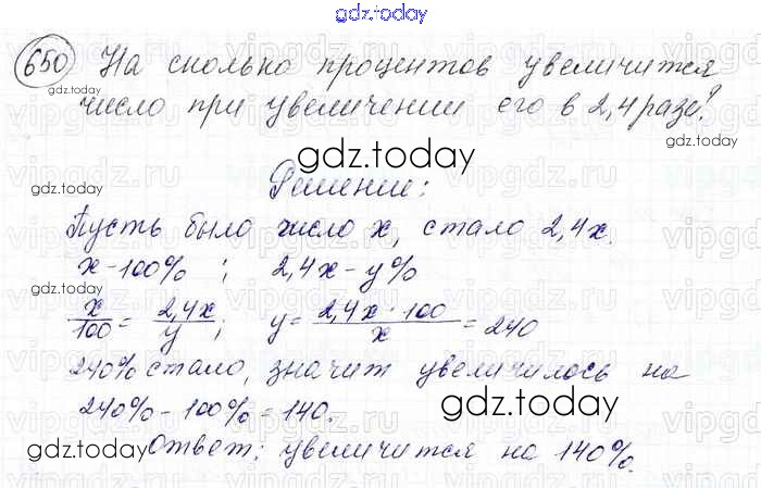 На страницах сайта gdz.today вы найдете учебный и вспомогательный материал, направленный на улучшения знаний школьной программы. ГДЗ - онлайн мир знаний Решение к главе 3. Отношения и пропорции (упражнения) 650 Учебнику по Математике для 6 класса Мерзляк, Полонский Вентана-граф Алгоритм успеха 2016