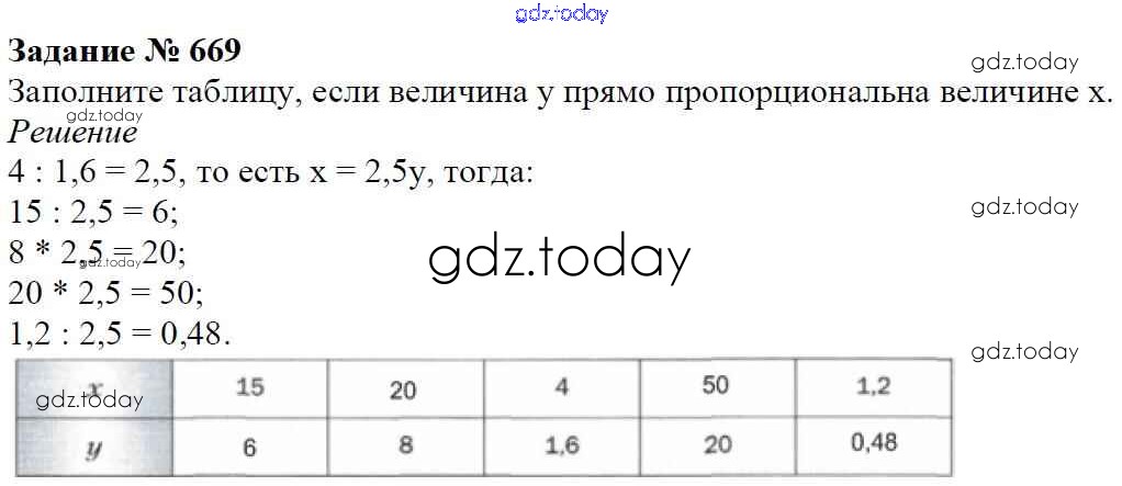 На страницах сайта gdz.today вы найдете учебный и вспомогательный материал, направленный на улучшения знаний школьной программы. ГДЗ - онлайн мир знаний Решение к главе 3. Отношения и пропорции (упражнения) 669 Учебнику по Математике для 6 класса Мерзляк, Полонский Вентана-граф Алгоритм успеха 2016