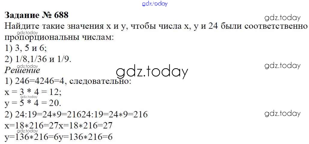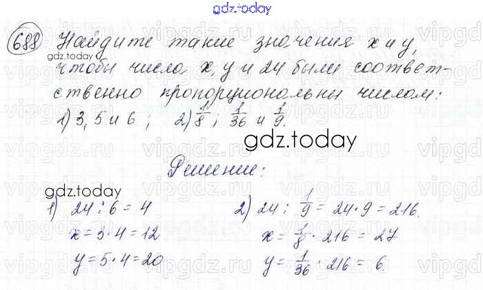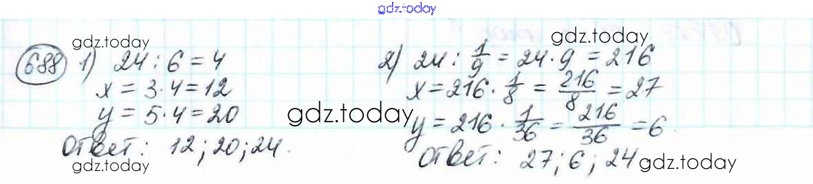 Ответы к Решение к главе 3. Отношения и пропорции (упражнения) 688 Учебнику по Математике для 6 класса Мерзляк, Полонский Вентана-граф Алгоритм успеха 2016