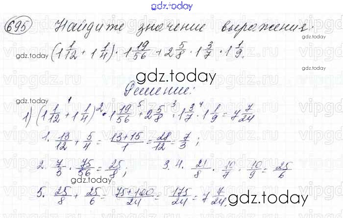 На страницах сайта gdz.today вы найдете учебный и вспомогательный материал, направленный на улучшения знаний школьной программы. ГДЗ - онлайн мир знаний Решение к главе 3. Отношения и пропорции (упражнения) 695 Учебнику по Математике для 6 класса Мерзляк, Полонский Вентана-граф Алгоритм успеха 2016