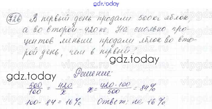 Ответы к Решение к главе 3. Отношения и пропорции (упражнения) 726 Учебнику по Математике для 6 класса Мерзляк, Полонский Вентана-граф Алгоритм успеха 2016