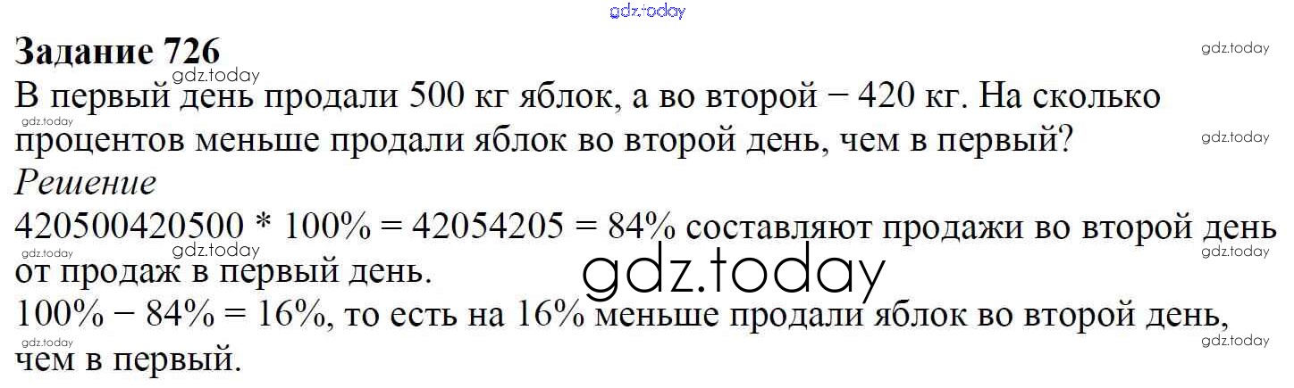 На страницах сайта gdz.today вы найдете учебный и вспомогательный материал, направленный на улучшения знаний школьной программы. ГДЗ - онлайн мир знаний Решение к главе 3. Отношения и пропорции (упражнения) 726 Учебнику по Математике для 6 класса Мерзляк, Полонский Вентана-граф Алгоритм успеха 2016