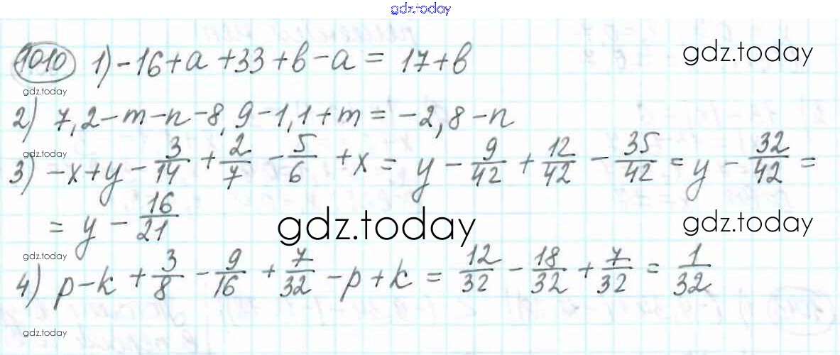 Ответы к Решение к главе 4. Рациональные числа и действия над ними (упражнения) 1010 Учебнику по Математике для 6 класса Мерзляк, Полонский Вентана-граф Алгоритм успеха 2016
