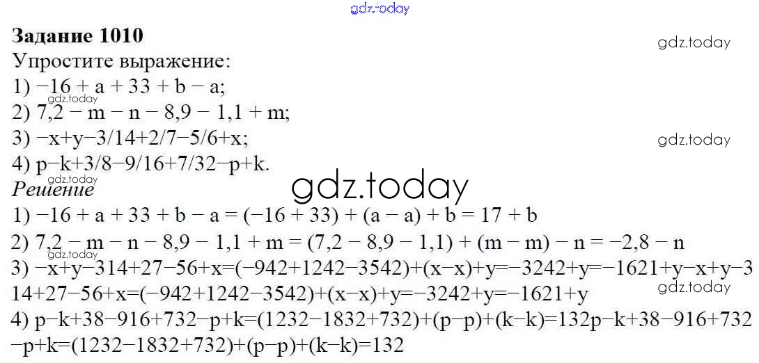 На страницах сайта gdz.today вы найдете учебный и вспомогательный материал, направленный на улучшения знаний школьной программы. ГДЗ - онлайн мир знаний Решение к главе 4. Рациональные числа и действия над ними (упражнения) 1010 Учебнику по Математике для 6 класса Мерзляк, Полонский Вентана-граф Алгоритм успеха 2016