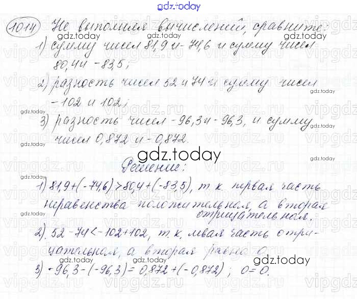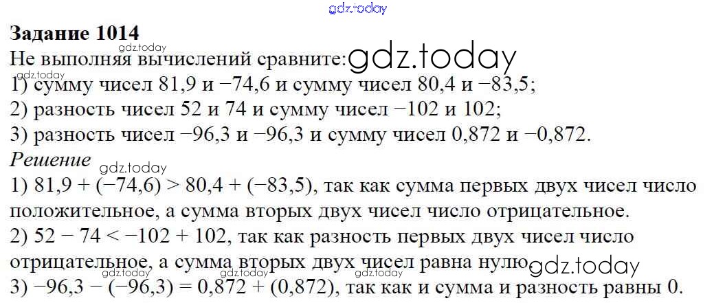 Ответы к Решение к главе 4. Рациональные числа и действия над ними (упражнения) 1014 Учебнику по Математике для 6 класса Мерзляк, Полонский Вентана-граф Алгоритм успеха 2016