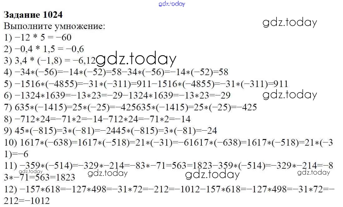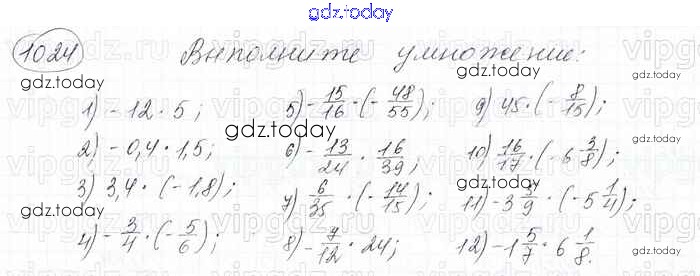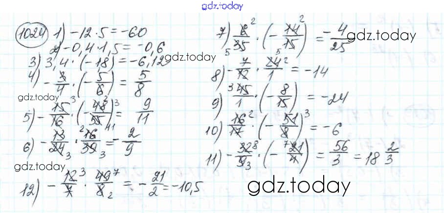 Ответы к Решение к главе 4. Рациональные числа и действия над ними (упражнения) 1024 Учебнику по Математике для 6 класса Мерзляк, Полонский Вентана-граф Алгоритм успеха 2016