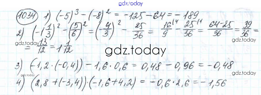 Ответы к Решение к главе 4. Рациональные числа и действия над ними (упражнения) 1034 Учебнику по Математике для 6 класса Мерзляк, Полонский Вентана-граф Алгоритм успеха 2016