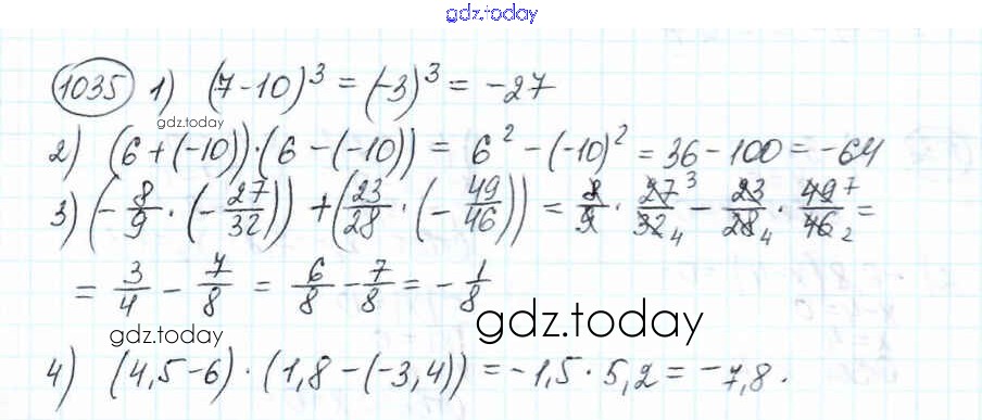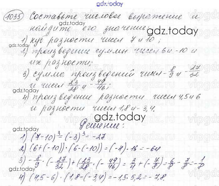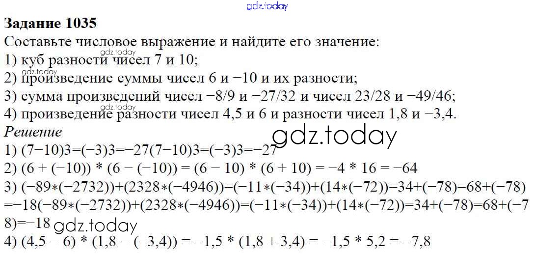 Ответы к Решение к главе 4. Рациональные числа и действия над ними (упражнения) 1035 Учебнику по Математике для 6 класса Мерзляк, Полонский Вентана-граф Алгоритм успеха 2016