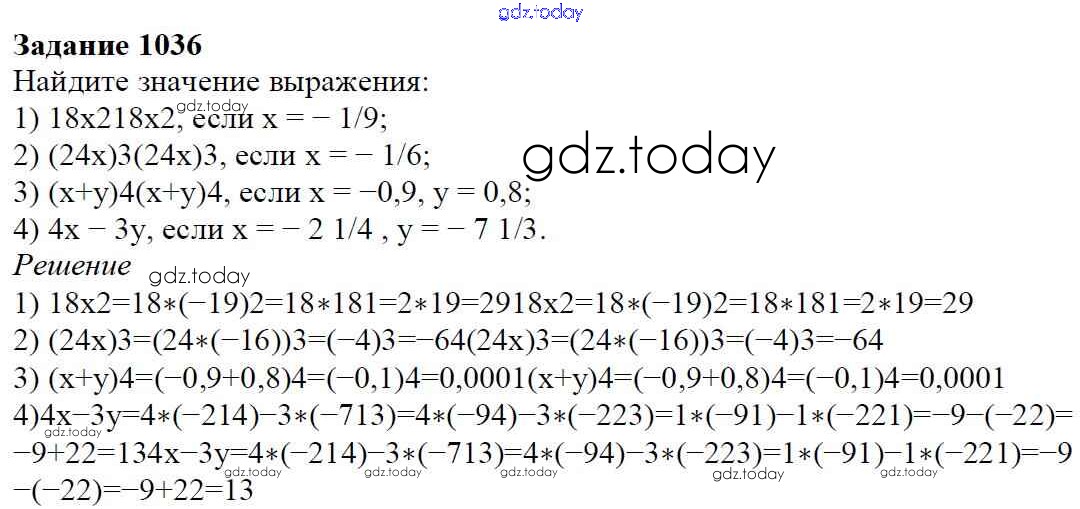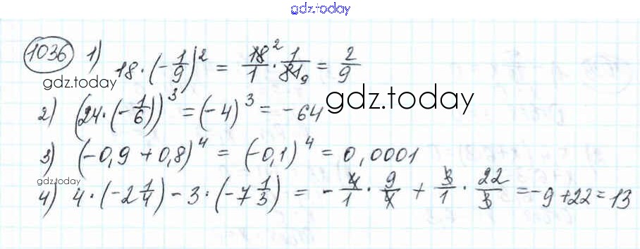 Ответы к Решение к главе 4. Рациональные числа и действия над ними (упражнения) 1036 Учебнику по Математике для 6 класса Мерзляк, Полонский Вентана-граф Алгоритм успеха 2016