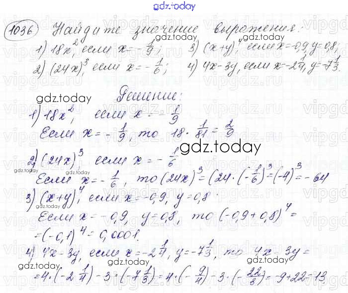 На страницах сайта gdz.today вы найдете учебный и вспомогательный материал, направленный на улучшения знаний школьной программы. ГДЗ - онлайн мир знаний Решение к главе 4. Рациональные числа и действия над ними (упражнения) 1036 Учебнику по Математике для 6 класса Мерзляк, Полонский Вентана-граф Алгоритм успеха 2016