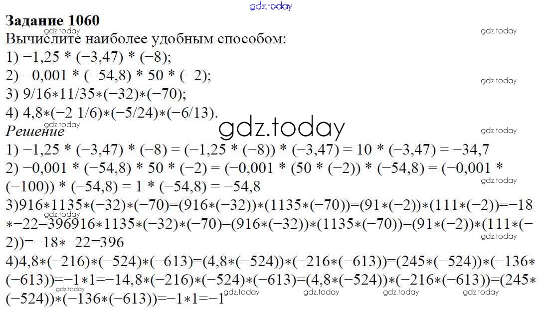 Ответы к Решение к главе 4. Рациональные числа и действия над ними (упражнения) 1060 Учебнику по Математике для 6 класса Мерзляк, Полонский Вентана-граф Алгоритм успеха 2016