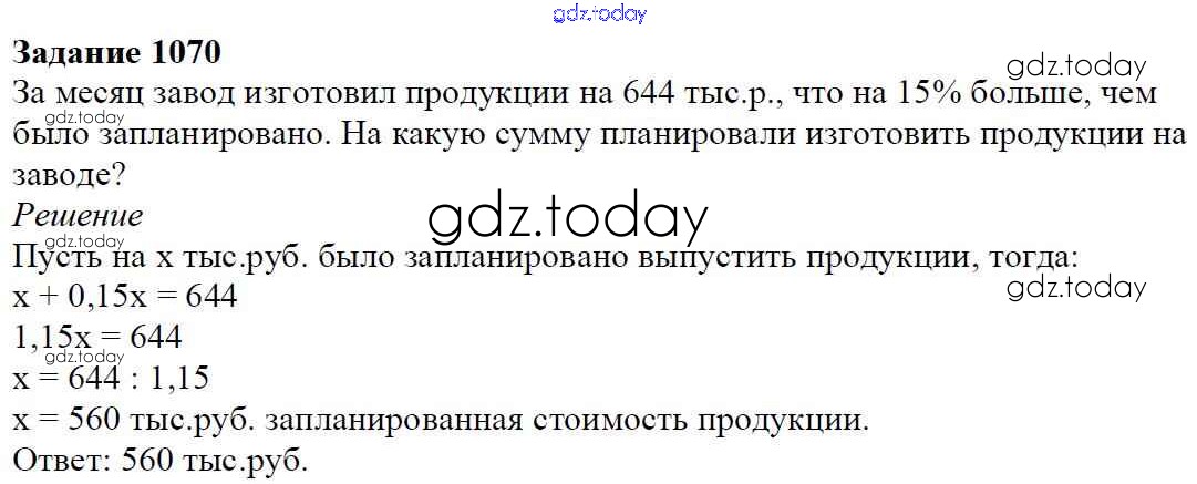 На страницах сайта gdz.today вы найдете учебный и вспомогательный материал, направленный на улучшения знаний школьной программы. ГДЗ - онлайн мир знаний Решение к главе 4. Рациональные числа и действия над ними (упражнения) 1070 Учебнику по Математике для 6 класса Мерзляк, Полонский Вентана-граф Алгоритм успеха 2016