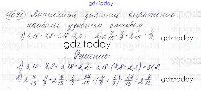 Ответы к Решение к главе 4. Рациональные числа и действия над ними (упражнения) 1071 Учебнику по Математике для 6 класса Мерзляк, Полонский Вентана-граф Алгоритм успеха 2016