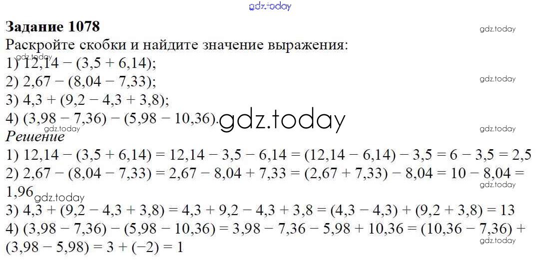 Ответы к Решение к главе 4. Рациональные числа и действия над ними (упражнения) 1078 Учебнику по Математике для 6 класса Мерзляк, Полонский Вентана-граф Алгоритм успеха 2016