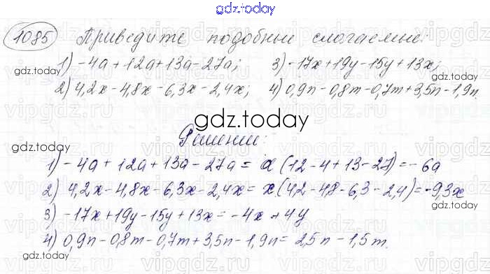 Ответы к Решение к главе 4. Рациональные числа и действия над ними (упражнения) 1085 Учебнику по Математике для 6 класса Мерзляк, Полонский Вентана-граф Алгоритм успеха 2016