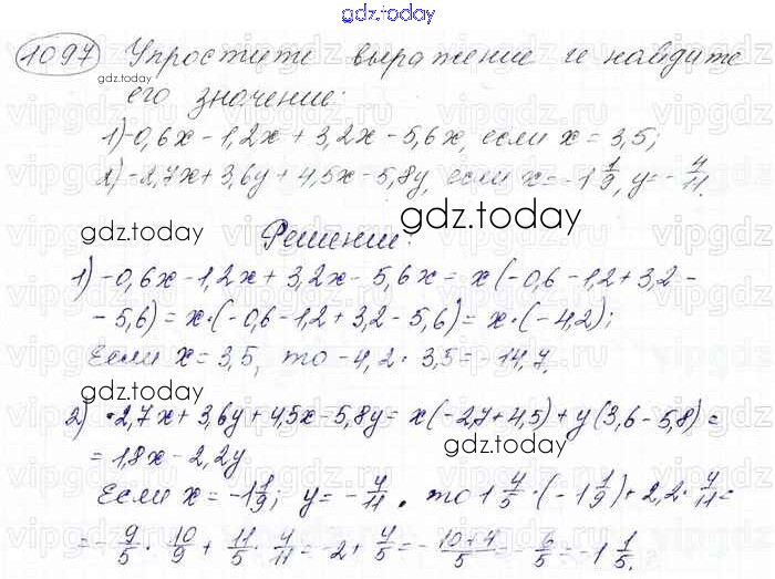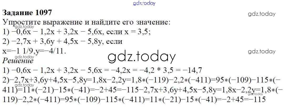 Ответы к Решение к главе 4. Рациональные числа и действия над ними (упражнения) 1097 Учебнику по Математике для 6 класса Мерзляк, Полонский Вентана-граф Алгоритм успеха 2016