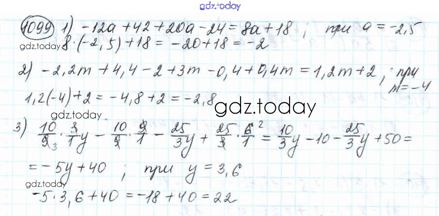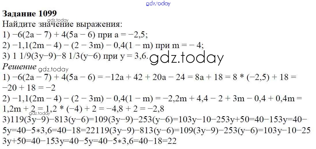 Ответы к Решение к главе 4. Рациональные числа и действия над ними (упражнения) 1099 Учебнику по Математике для 6 класса Мерзляк, Полонский Вентана-граф Алгоритм успеха 2016