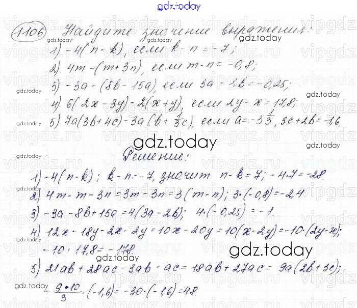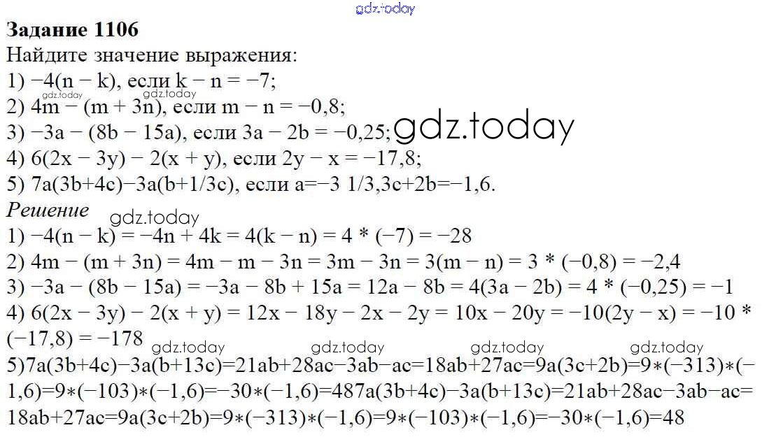 Ответы к Решение к главе 4. Рациональные числа и действия над ними (упражнения) 1106 Учебнику по Математике для 6 класса Мерзляк, Полонский Вентана-граф Алгоритм успеха 2016