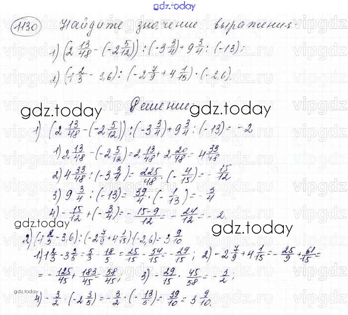 На страницах сайта gdz.today вы найдете учебный и вспомогательный материал, направленный на улучшения знаний школьной программы. ГДЗ - онлайн мир знаний Решение к главе 4. Рациональные числа и действия над ними (упражнения) 1130 Учебнику по Математике для 6 класса Мерзляк, Полонский Вентана-граф Алгоритм успеха 2016