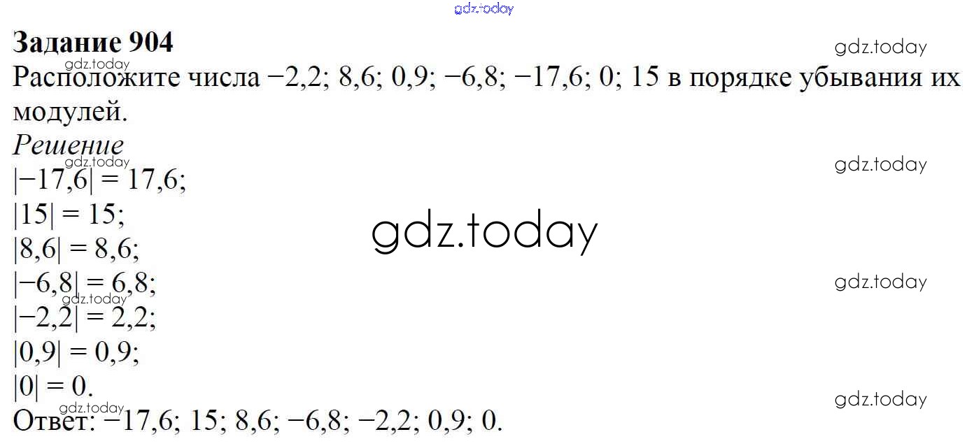 Ответы к Решение к главе 4. Рациональные числа и действия над ними (упражнения) 904 Учебнику по Математике для 6 класса Мерзляк, Полонский Вентана-граф Алгоритм успеха 2016
