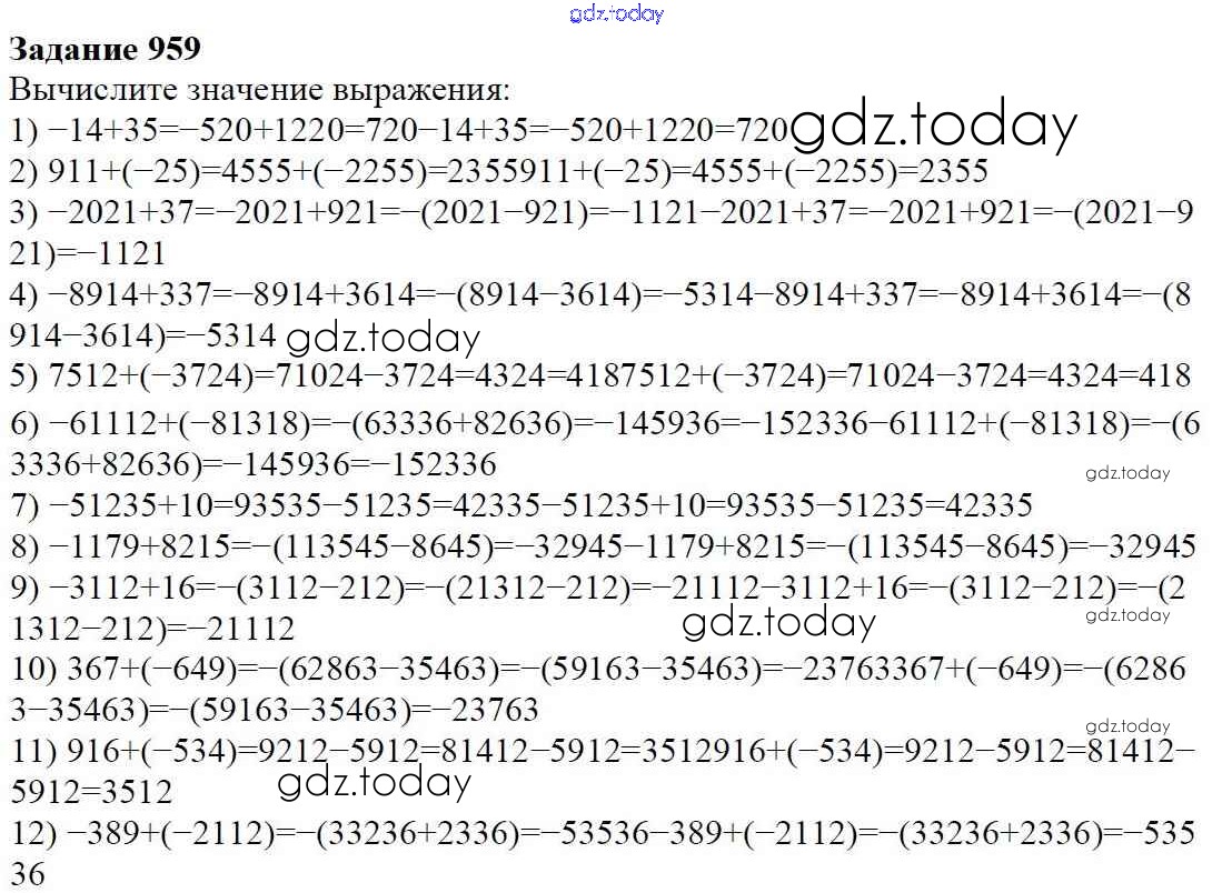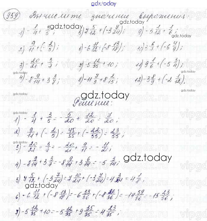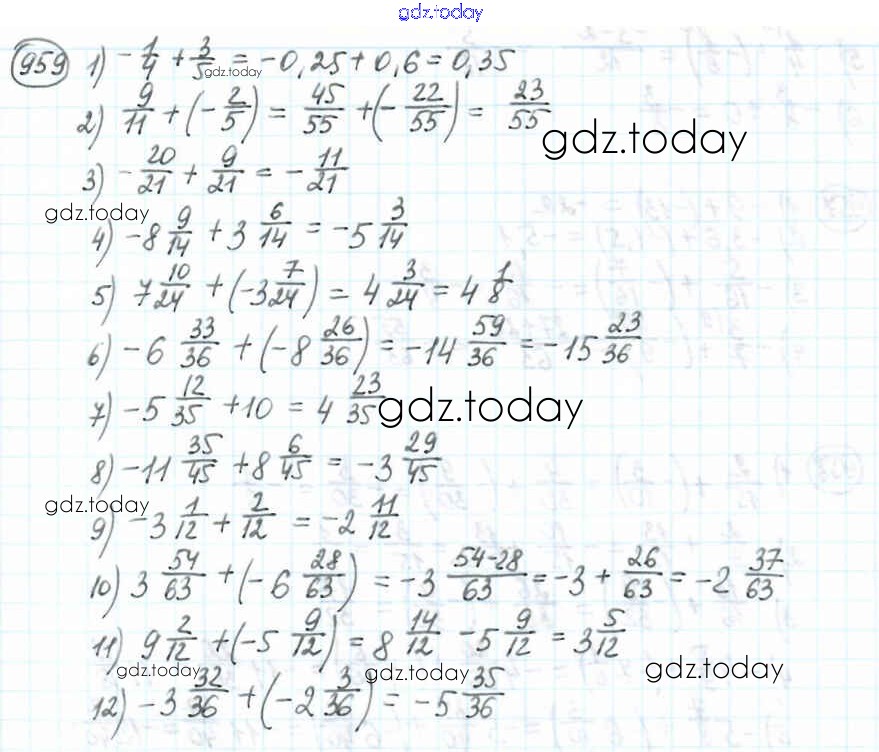 Ответы к Решение к главе 4. Рациональные числа и действия над ними (упражнения) 959 Учебнику по Математике для 6 класса Мерзляк, Полонский Вентана-граф Алгоритм успеха 2016