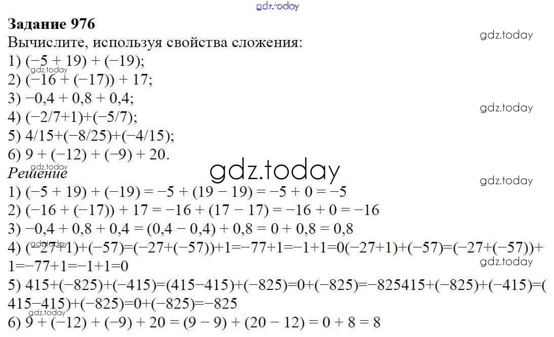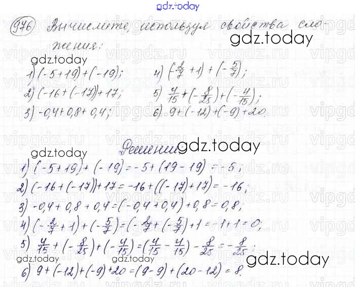 Ответы к Решение к главе 4. Рациональные числа и действия над ними (упражнения) 976 Учебнику по Математике для 6 класса Мерзляк, Полонский Вентана-граф Алгоритм успеха 2016