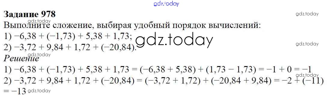 На страницах сайта gdz.today вы найдете учебный и вспомогательный материал, направленный на улучшения знаний школьной программы. ГДЗ - онлайн мир знаний Решение к главе 4. Рациональные числа и действия над ними (упражнения) 978 Учебнику по Математике для 6 класса Мерзляк, Полонский Вентана-граф Алгоритм успеха 2016