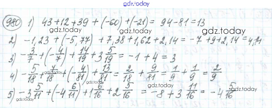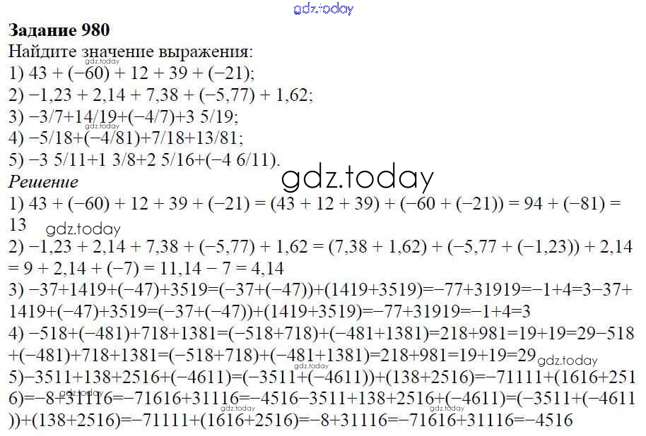 Ответы к Решение к главе 4. Рациональные числа и действия над ними (упражнения) 980 Учебнику по Математике для 6 класса Мерзляк, Полонский Вентана-граф Алгоритм успеха 2016