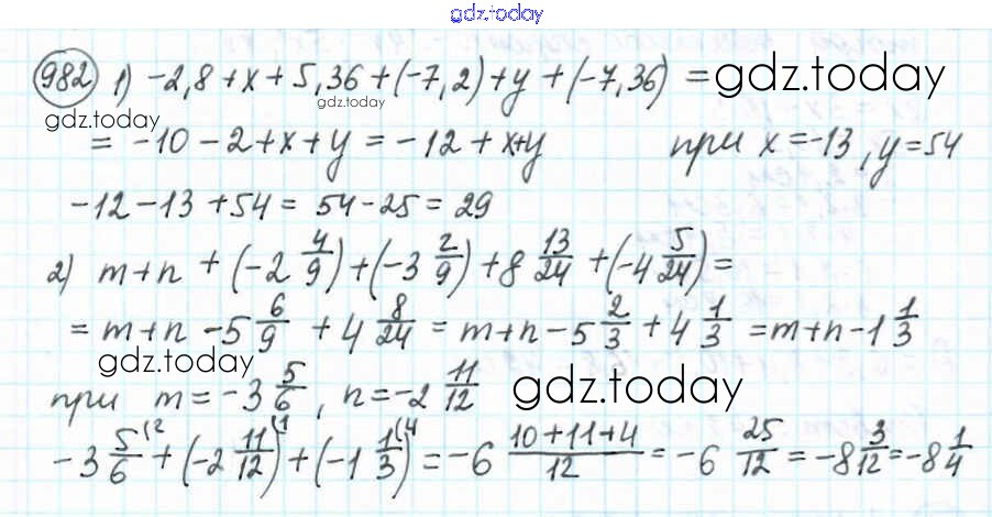 Ответы к Решение к главе 4. Рациональные числа и действия над ними (упражнения) 982 Учебнику по Математике для 6 класса Мерзляк, Полонский Вентана-граф Алгоритм успеха 2016