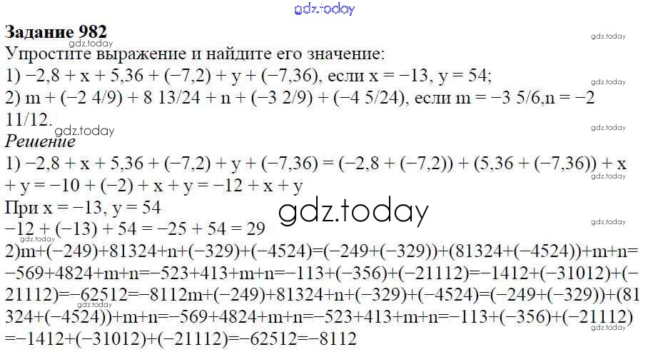 На страницах сайта gdz.today вы найдете учебный и вспомогательный материал, направленный на улучшения знаний школьной программы. ГДЗ - онлайн мир знаний Решение к главе 4. Рациональные числа и действия над ними (упражнения) 982 Учебнику по Математике для 6 класса Мерзляк, Полонский Вентана-граф Алгоритм успеха 2016