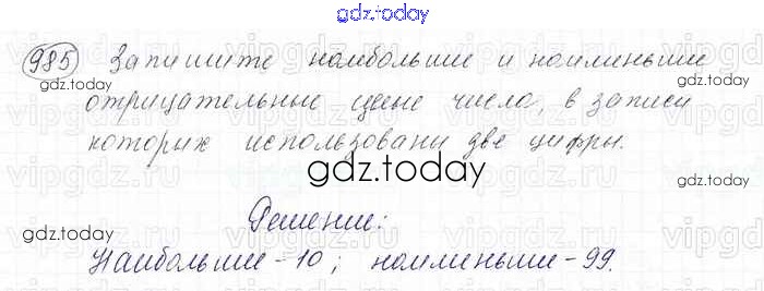 Ответы к Решение к главе 4. Рациональные числа и действия над ними (упражнения) 985 Учебнику по Математике для 6 класса Мерзляк, Полонский Вентана-граф Алгоритм успеха 2016
