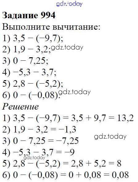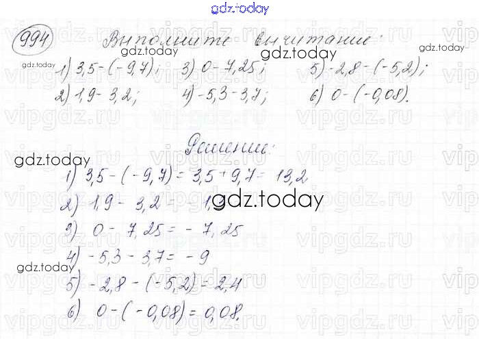 Ответы к Решение к главе 4. Рациональные числа и действия над ними (упражнения) 994 Учебнику по Математике для 6 класса Мерзляк, Полонский Вентана-граф Алгоритм успеха 2016
