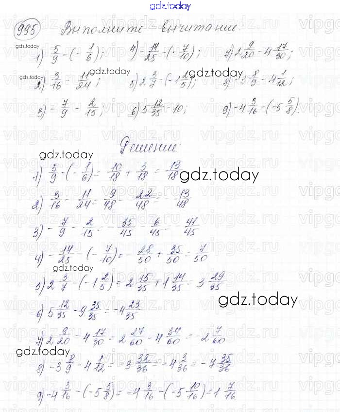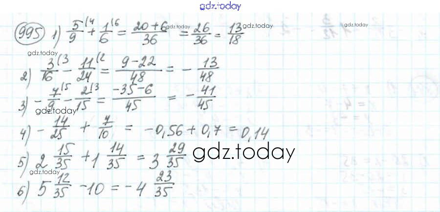 Ответы к Решение к главе 4. Рациональные числа и действия над ними (упражнения) 995 Учебнику по Математике для 6 класса Мерзляк, Полонский Вентана-граф Алгоритм успеха 2016