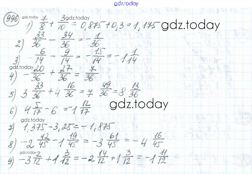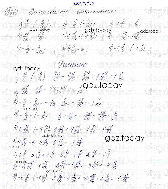 Ответы к Решение к главе 4. Рациональные числа и действия над ними (упражнения) 996 Учебнику по Математике для 6 класса Мерзляк, Полонский Вентана-граф Алгоритм успеха 2016