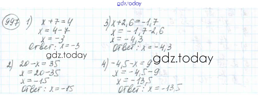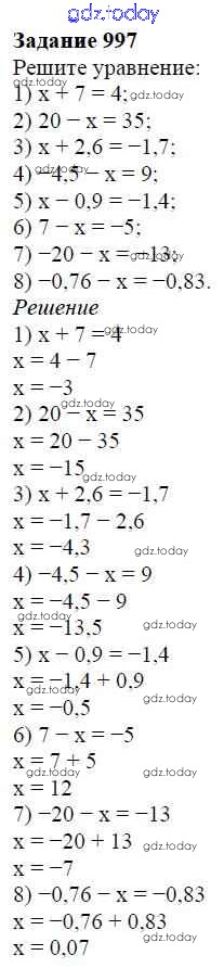 Ответы к Решение к главе 4. Рациональные числа и действия над ними (упражнения) 997 Учебнику по Математике для 6 класса Мерзляк, Полонский Вентана-граф Алгоритм успеха 2016