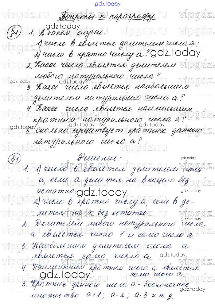 Ответы к Решение к вопросам §1 Учебнику по Математике для 6 класса Мерзляк, Полонский Вентана-граф Алгоритм успеха 2016
