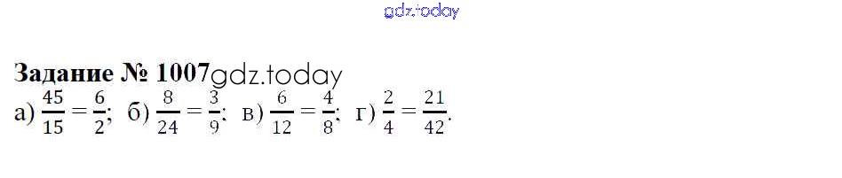 Ответы к Решение к упражнениям 1007 Учебнику по Математике для 6 класса Зубарева, Мордкович Мнемозина 2015